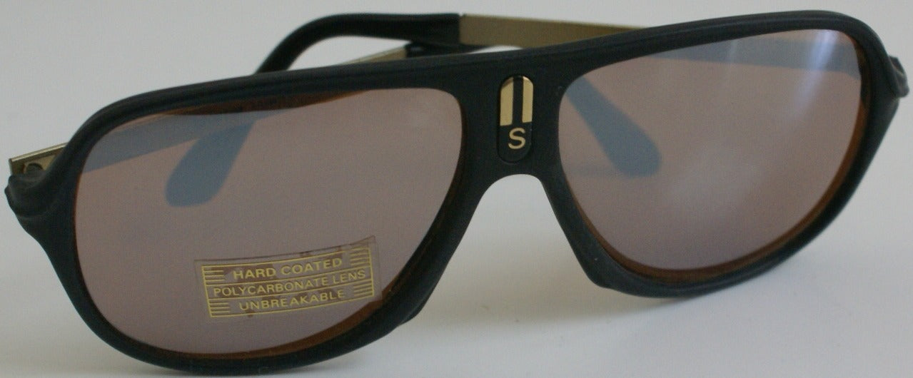 True Vintage from the early 90's Sports Combo style Navigator sunglasses w/ "S" logo in the middle of the frame & "Sports" logo on the side temples / Coppermax lens technology that has silver flash mirror on the front side of the lens and anti-reflective coating on the back side of the lens which enhance contrast